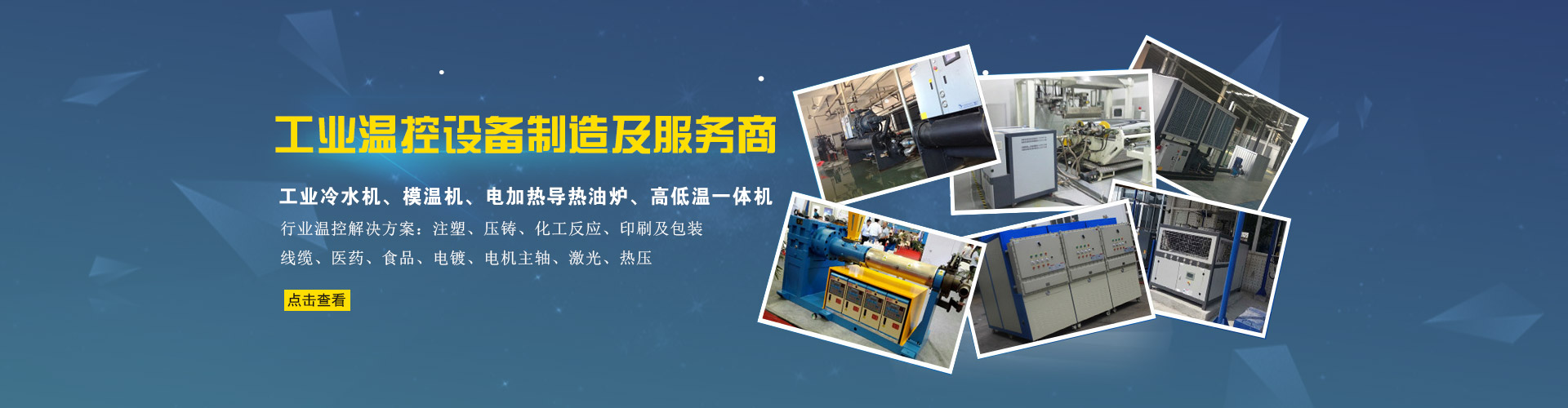 我們的產品主要包括:冷熱一體機、油循環(huán)溫度控制機、水循環(huán)溫度控制機、工業(yè)冷水機、冷油機、螺桿式冷水機、熱泵機組、蒸發(fā)式冷凝機組。針對不同行業(yè)的專業(yè)溫度控制需求,公司還研發(fā)出了行業(yè)專用溫控設備,如變速箱檢測專用冷熱一體機、橡塑專用水溫機、壓鑄專用油溫機、防爆模溫機、液壓系統專用冷油機等。